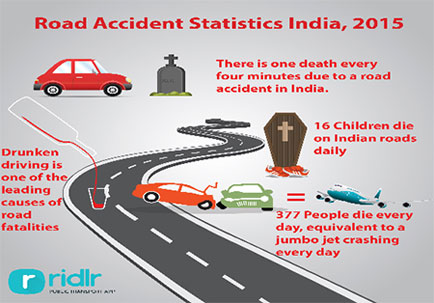 • India witnesses around 145000 road accidents in a year. That makes about 207 deaths per 100000 vehicles